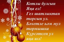 Декабрь бураннары, кышкы салкыннарда җемелдәгән йолдызлар алып килгән Яңа ел белән котлыйбыз! Бәйрәмегез мөбарәк, күңелле, куанычлы булсын. Эшләрегез уң булсын, чәчәк атсын, күңелегездәге мәрхәмәтлелек нуры җаныгызны тагын да ягымлы, матур итсен, ялкынландырып бизәсен. Бусагаларыгыздан караңгылык, хәвеф-хәтәр атлап кермәсен, бәла-каза йөрмәсен. Гаилә бәхетегез сүнмичә балкып торсын.
