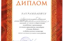 Ученик 9Б класса Мугтазиров Камиль занял III место в районных соревнованиях по военно-прикладному многоборью "Салют, Победа!" на Кубок военного комиссара Актанышского муниципального района. Поздравляем! Молодец!