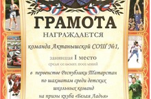 Команда нашей школы в составе учащихся 5-6 классов Закирова Динислама, Ибрагимова Камиля, Нуруллина Нияза заняла I место среди сельских поселений в первенстве Республики Татарстан по шахматам среди детских школьных команд на призы клуба "Белая ладья". Молодцы, ребята!