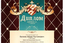 Учащийся 1А класса Валиев Айдар (куратор - Даутова Алсу Камиловна) принял участие в II Всероссийской олимпиаде по математике "Рыжий котенок" и награжден дипломом победителя II степени. Так держать, Айдар!