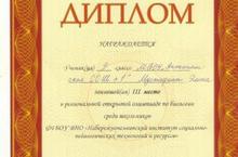 Поздравляем ученицу 9а класса Мустафину Элину (учитель Ханнанова Р.Р.) с IIIместом в региональной олимпиаде по биологии среди школьников ФГБОУ ВПО "Набережночелнинский институт социально-педогических технологий и ресурсов". Также дипломами и сертификатами за успешные выступления были награждены ученицы 9а и 10б классов Гаязова Алия и Сабирова Резеда (учитель Ханнанова Р.Р.) Молодцы!