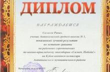 Поздравляем ученика 10в класса Салихова Риназа с лучшим результатом по метанию гранаты на районных соревнованиях по военно-прикладному многоборью "Салют, Победа!" на кубок военного комисссара Актанышского муниципального района. Молодец, Риназ!
