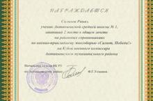 Поздравляем ученика 10в класса Салихова Риназа, занявшего 2 место в общем зачёте на районных соревнованиях по военно-прикладному многоборью "Салют, Победа!" на кубок военного комисссара Актанышского муниципального района. Молодец, Риназ!