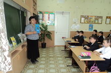 Наш школьный библиотекарь Хисамова Нурсия Муллануровна, провела библиографический урок в 4 "а" классе на тему "Новые книги".