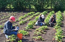 В лагере труда и отдыха собирают ягоды.