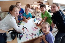 Мәктәп лагеренда ял итү дәвам итә. Бүген чаралар планы буенча стена газеталары ясау. Һәр отряд үз газетасы өстендә эшләде. Коллектив эш һәр тәрбияләнүчегә гомуми иҗади эшне булдыруда актив катнашырга мөмкинлек бирә.
