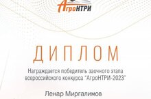 «АгроНТРИ-2023» бөтенроссия конкурсының читтән торып катнашу этабында 7Т сыйныфы укучысы Миргалимов Ленар җиңүче булды. Укытучысы Валиева Алсу Риф кызы. Котлыйбыз!