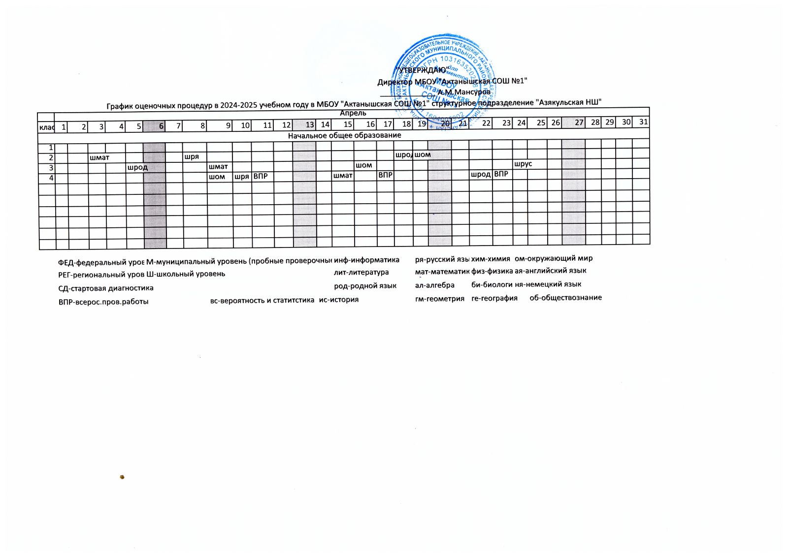 - График оценочных процедур в 2024-2025 у.г. 4 четверть апрель