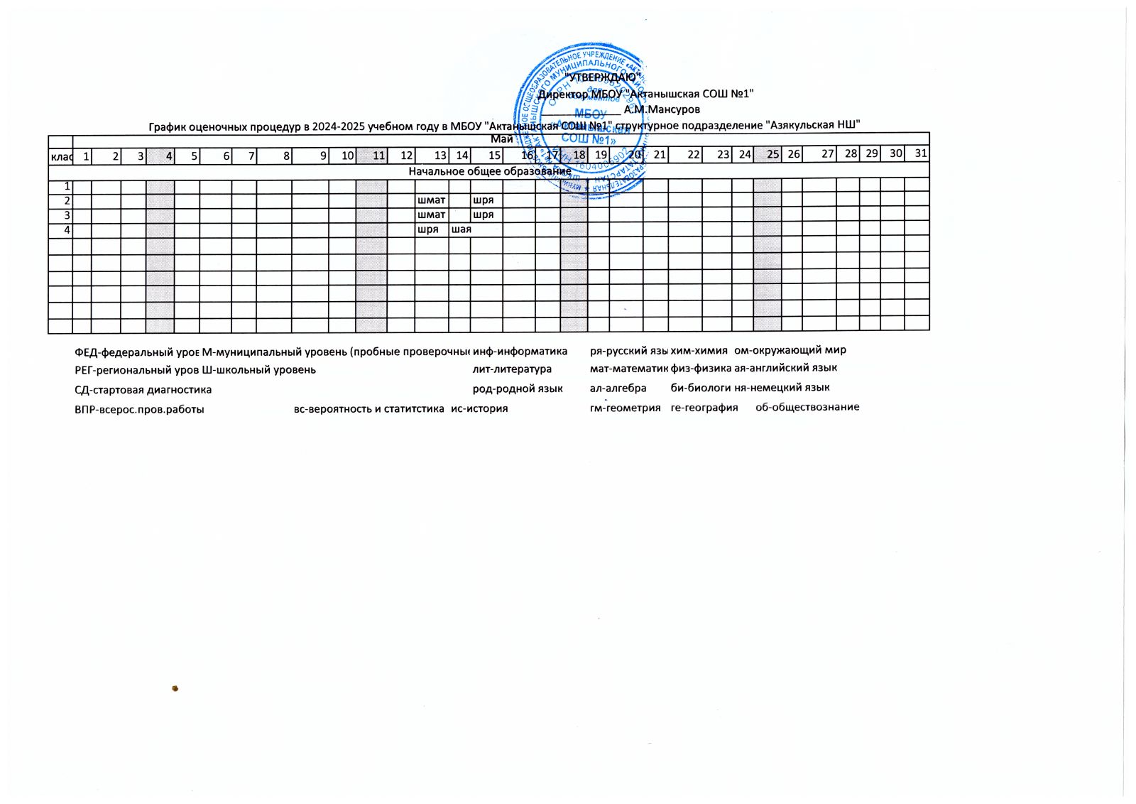 - График оценочных процедур в 2024-2025 у.г. 4ч. май