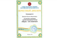 Бакиров Рузиль Флоритович (учитель математики и информатики) награжден Почетной грамотой за участие в конкурсе научно-популярных статей "Наука - это понятно!"