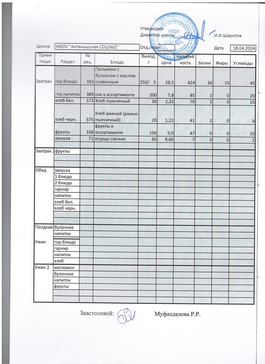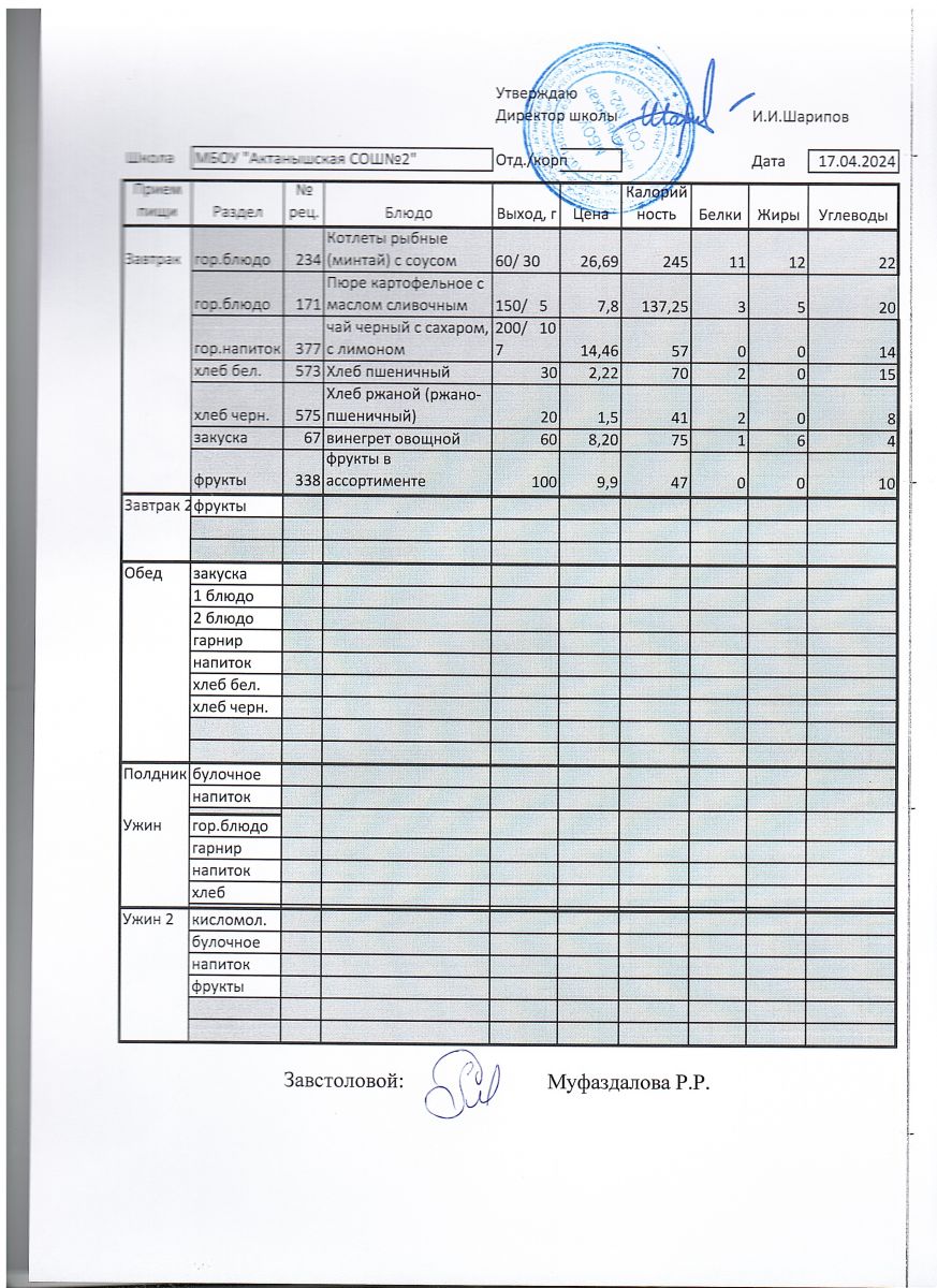 Меню пришкольного лагеря 1.06.2024-21.06.2024 г