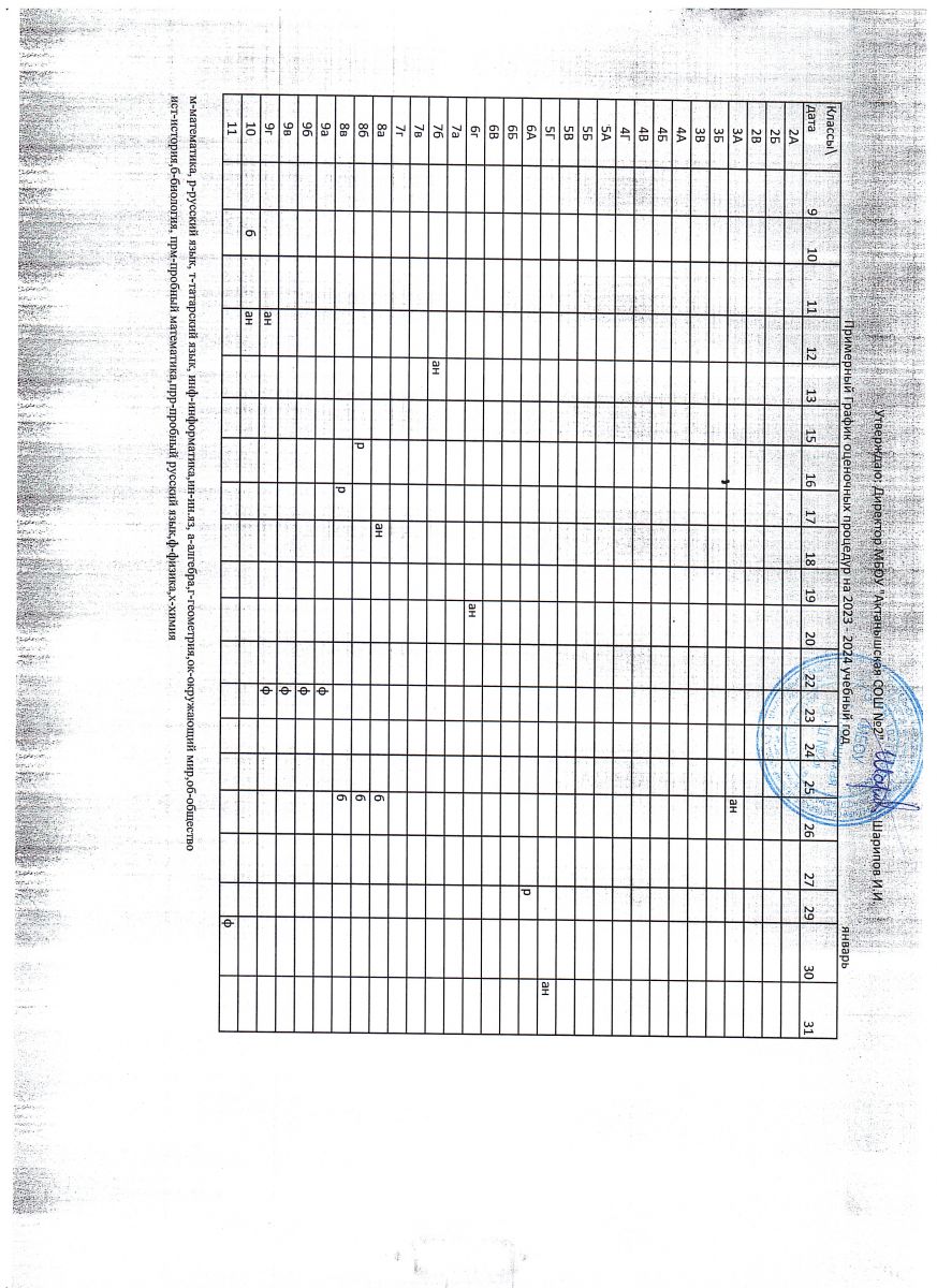 Примерный график оценочных процедур (январь)