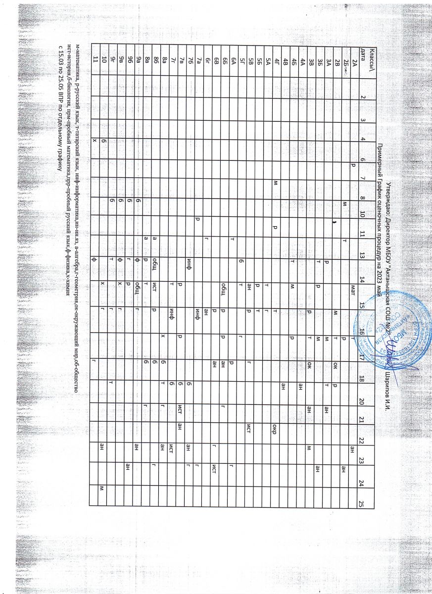 Примерный график оценочных процедур (май)