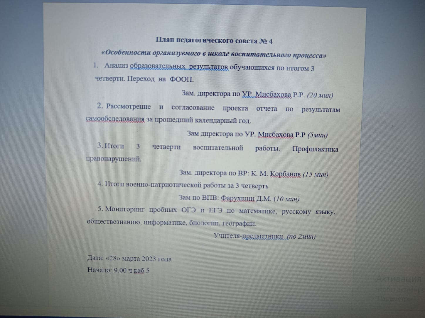 28 марта в школе состоялся педсовет "Эффективаность реализации образовательных и воспитательных возможностей для формирования личной успешности обучающихся". Начало в 9 часов.