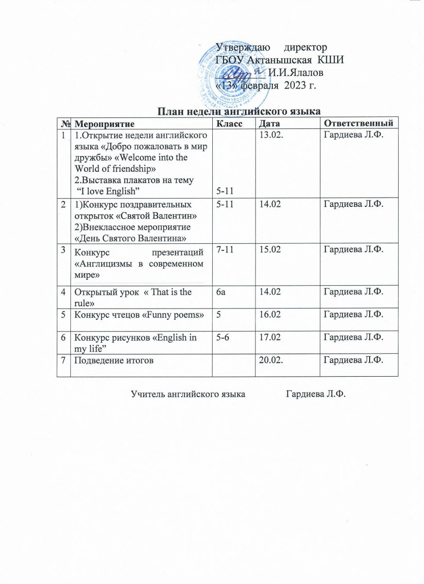 Открытый урок по английскому языку в 6а классе 16.02.2023