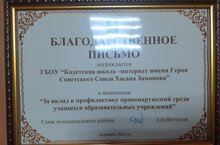 Актанышская кадетская школа-интернат награждена Благодарственным письмом за вклад в профилактику правонарушений среди учащихся образовательных учреждений. Поздравляем коллектив школы!