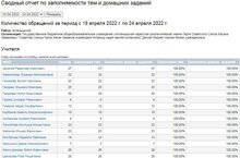 Сводный отчет по заполняемости тем и домашних заданий (18-23.04.2022)