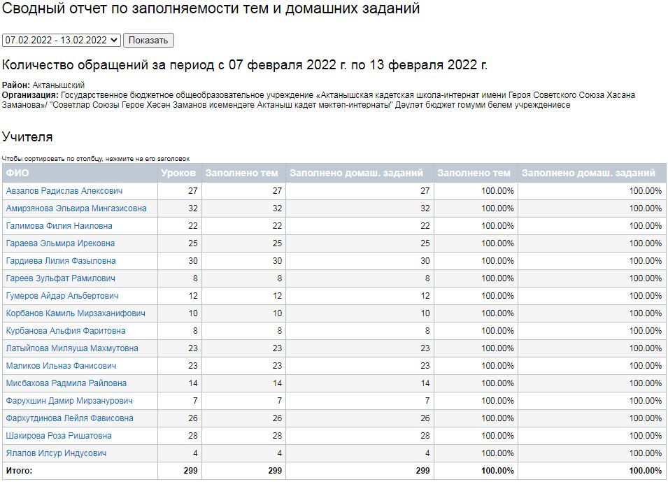 Сводный отчет по заполняемости тем и домашних заданий (07-13.02.2022)