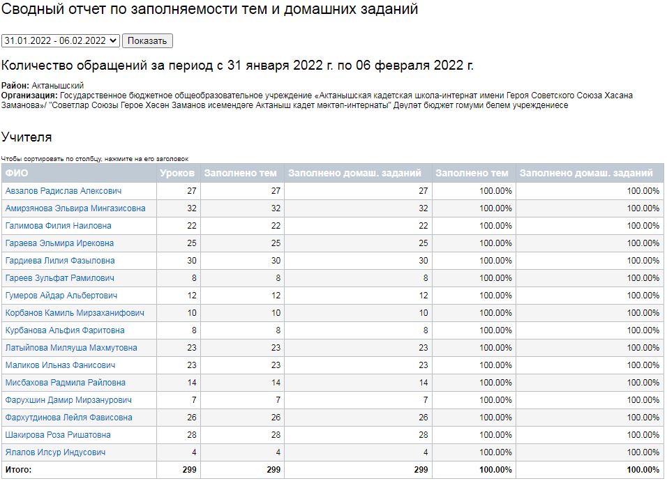Сводный отчет по заполняемости тем и домашних заданий (31.01-06.02.2022)
