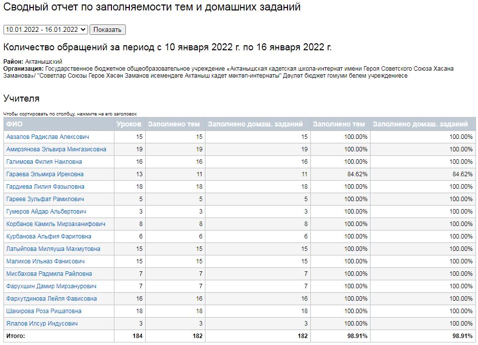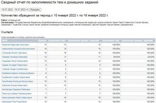 Сводный отчет по заполняемости тем и домашних заданий (10-16.01.2022)