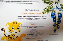 Семья Гильмуллиных заняла 2 место в муниципальном конкурсе поделок "Символ года" и награждена Грамотой.