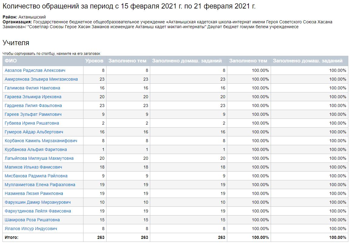 Сводный отчет по заполняемости тем и домашних заданий (15-20.02.2021)