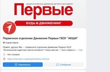 Присоединяемся к сообществу "Первичное отделение Движение Первых ГБОУ "АКШИ"" по ссылке: https://m.vk.com/pervie_gboy_aksi