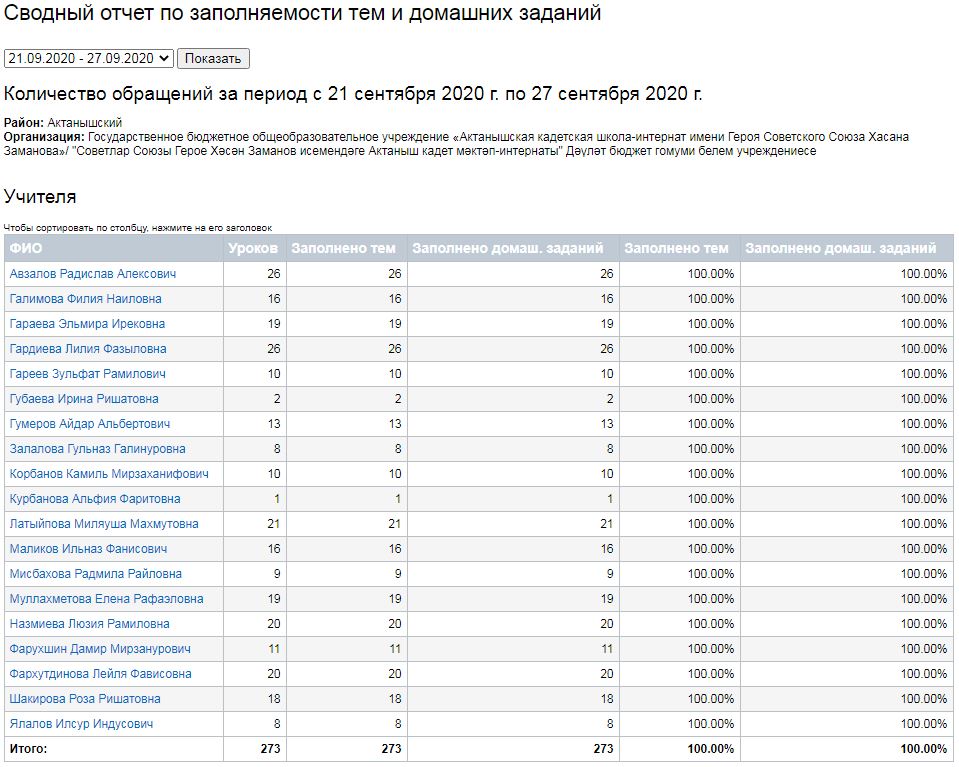 Сводный отчет по заполняемости тем и домашних заданий (21-25.09.2020)