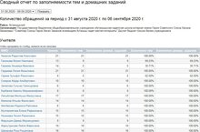 Сводный отчет по заполняемости тем и домашних заданий (01-04.-09.2020)
