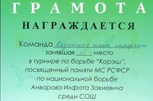 16 ноября в универсальном спортивном комплексе "Батыр" прошел турнир по национальной татаро-башкирской, спортивной борьбе памяти МС РСФСР по национальной борьбе Анварова И.З. Команда Актанышской кадетской школы-интернат под руководством тренера по национальной борьбе Насриева И. заняла общекомандное III место, награждена грамотой.