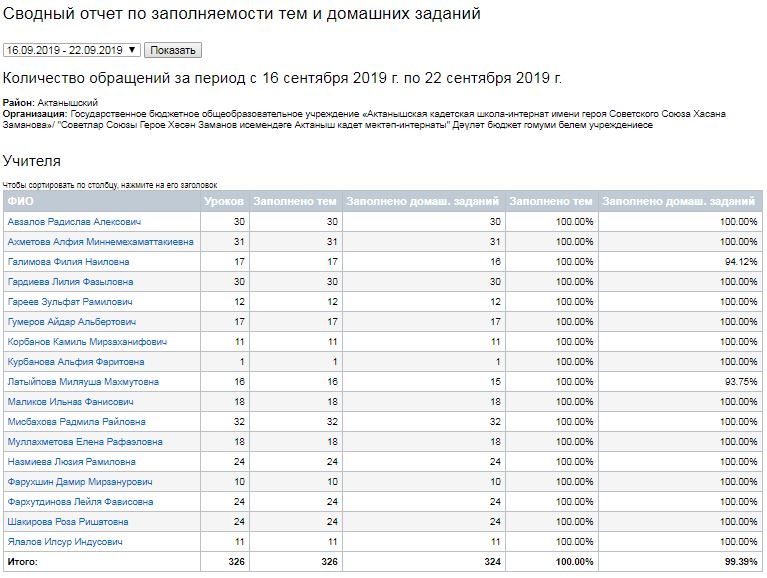 Сводный отчет по заполняемости тем и домашних заданий (16-21.09.2019) 23.09.2019