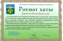 Директор Актанышской кадетской школы-интернат Илсур Индусович Ялалов награжден Благоларственым письмом главы Актанышского района.