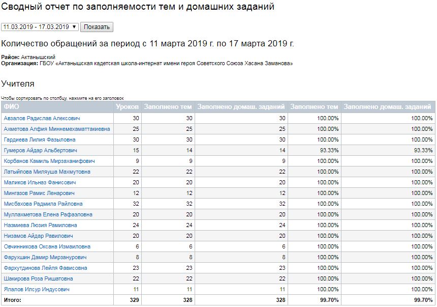 Сводный отчет по заполняемости тем и домашних заданий (11-16.03.2019) 18.03.2019
