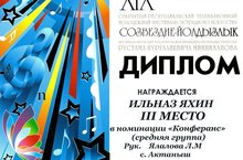 10 марта в Менделеевске состоялся зональный республиканский тур Фестиваля "Созвездие 2019", в котором принял участие ученик 9 класса Актанышской кадетской школы-интерната Яхин Ильназ в номинации "конферанс", занял III место и награждён Дипломом. Руководитель Ялалова Л.М.