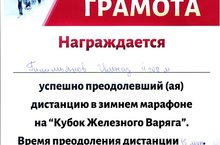 3 января в г.Нефтекамск состоялся зимний беговой марафон "Кубок Железного Варяга", в котором ученик 11 класса нашей школы Гилимьянов Ильназ успешно преодолел дистанцию 4000 м и награждён грамотой, медалью. Поздравляем!