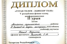 Ученик 8б класса нашей школы Исанов Вадим (научный руководитель Ахметова А.М.) занял II место в V Республиканской научно-исследовательской конференции "Родной язык - язык писателей". Поздравляем и желаем дальнейших успехов!
