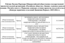 Рейтинг Вызова Партнера Общероссийской общественно-государственной просветительской организации "Российское общество Знание" на сегодняшний день. Первичное отделение «Движения Первых» ГБОУ «АКШИ» — призёры! Молодцы! Так держать!