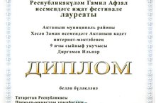 18 мая на базе ГАОУ "Гуманитарная гимназия-интернат для одаренных детей" состоялся республиканский творческий фестиваль имени Г.Афзала. Из нашей школы: ученик 11 класса Халиуллин Марат, ученики 9 класса Габделмукимова Айсылу и Диргамов Ильнар стали лауреатами фестиваля, награждены Дипломами. Руководители Фархетдинова Л.Ф. и Латыйпова М.М. Поздравляем и желаем дальнейших успехов!