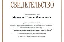 Учителя математики и информатики Кадетской школы-интернат Маликов И.Ф. и Маликова Р.Т. прошли методические сертифицированные тренинги по курсу "Основы программирования на языке Java" и получили свидетельства о прохождении тренинга.
