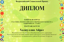 Ученик 5 класса ГБОУ "Актанышская КШИ" Халиуллин Айрат(руководитель воспитатель Хасанов И.М.) награжден Дипломом участника Всероссийского творческого конкурса "Защитникам - Слава!"