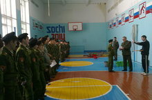 Сегодня на утреннем разводе директор школы И. И. Ялалов поздравил победителей военно-спортивной игры "Зарница" и вручил дипломы.