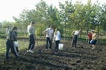 Продолжается работа на пришкольном садовом участке. Учащиеся 7 класса готовят почву на следующий год посева.