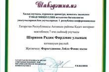 5) В республиканской научно-методической конференции, посвященной великому татарскому поэту Т.Миннуллину, ученик 7 класса Шарипов Р. получил свидетельство.