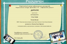 Дипломом участника награждается ученик 5 класса Татыев Богдан (руководитель Мокимов Р.Р.) за конкурсную работу, представленную в номинации: "Моя будущая профессия" в всероссийском конкурс - фестивале "Я Современный - ученик!" Поздравлеям и желаем дальнейших успехов!