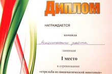 I место стрельбе из пневматической винтовки - Давыдова И.(11 кл.), Халиуллин Ф.(10 кл.);