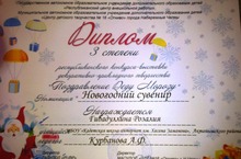 Награждается ученица 7 класса Шагиева Эльза дипломом 2 степени республиканского конкурса-выставки декоративно-прикладного творчества "Поздравление Деду Морозу" в номинации "Новогодний сувенир". Руководитель Хайдаров А.А. Молодец! Поздравляем и желаем дальнейших побед!