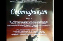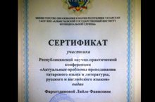 Участник Республиканской научно-практической конференции "Актуальные проблемы преподавания татарского языка и литературы, русского и английского языков " организованной "Альметевский государственный институт муниципальной службы" Фархутдинова Л.Ф. получила возможность напечатать в книге свою научную работу по проблеме преподавания татарского языка и литературы, которая выйдет в феврале 2013 года. Молодец! Желаем дальнейших успехов.