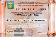 24 февраля состоялся итог районного тура конкурса "Учитель года - 2012 ". Нашему учителю английского языка Гардиевой Лилии Фазыловны было вручено свидетельство участника.