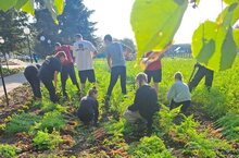 Сентябрьская погода порадовала нас тёплым солнечным деньком и мы учащиеся 7, 10, 11 классов, вооружившись перчатками, вёдрами и вилами, отправились на пришкольные участки, собирать урожай.