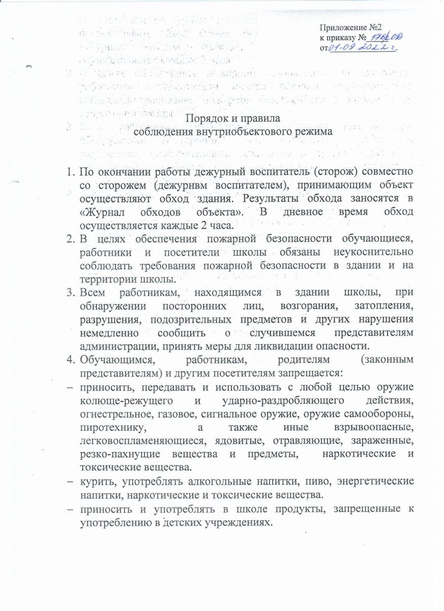 Приложение №2 к приказу №176/2-ОД от 01.09.2022 г. Порядок и правила внутриобъектового режима